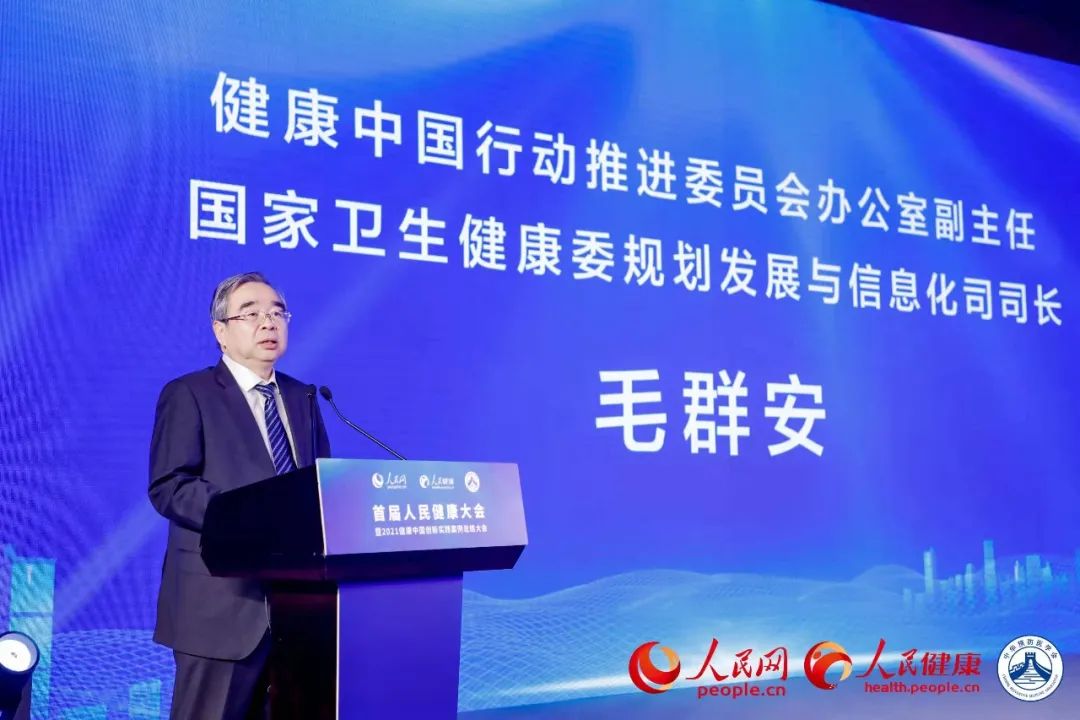 12月15日,由人民网主办、人民健康承办、中华预防医学会学术支持的首届人民健康大会暨2021健康中国行动创新实践案例总结大会在北京举行。健康中国行动推进委员会办公室副主任、国家卫生健康委规划发展与信息化司司长毛群安,中华预防医学会名誉会长、中国工程院院士、健康中国行动专家咨询委员会主任委员王陇德出席大会并致辞。中国健康教育中心主任、党委书记李长宁,教育部体育卫生与艺术教育司副司长、一级巡视员刘培俊,中国工程院院士、国家食品安全风险评估中心研究员、总顾问陈君石,国家心理健康和精神卫生防治中心主任姚宏文,国家体育总局群众体育司副司长高元义、中华预防医学会副会长杨维中出席活动做主旨发言。