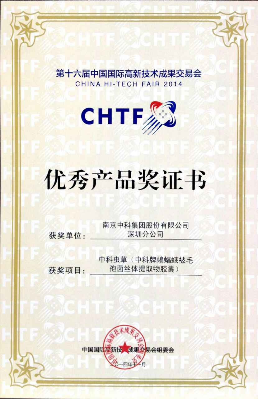 中科牌蝙蝠蛾被毛孢菌丝体(冬虫夏草)提取物胶囊荣获高交会优秀产品奖